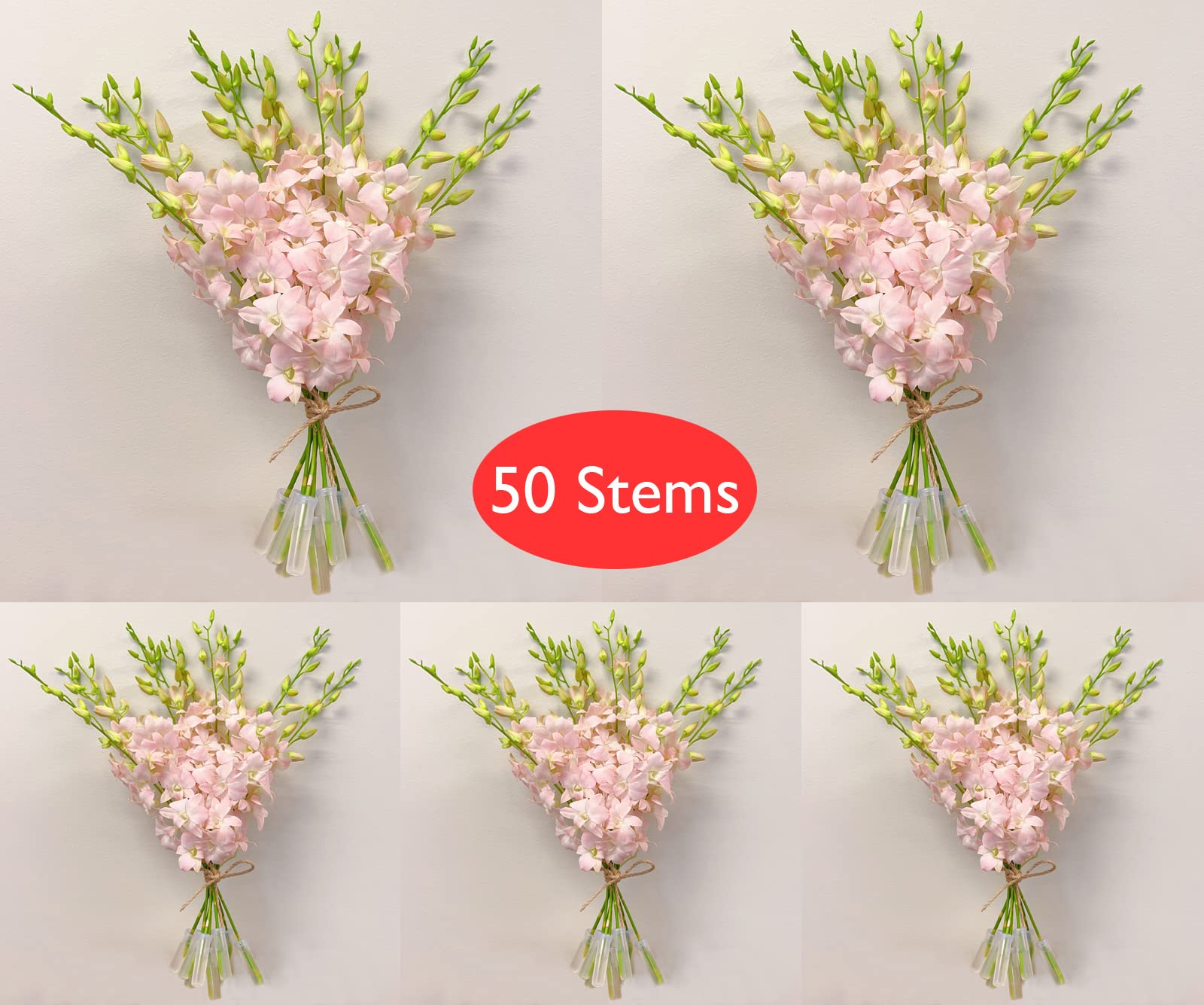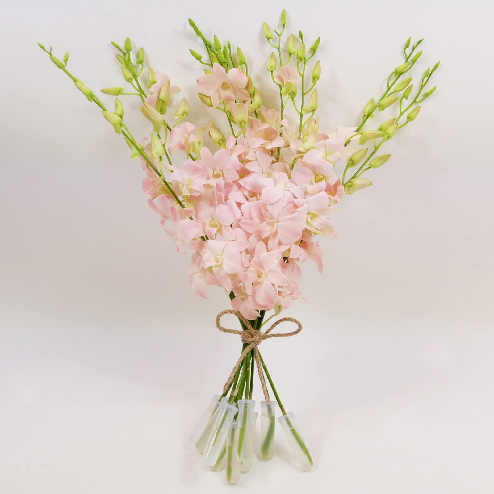 - Premium, long-stem Dendrobium orchids with light, peachy pink blooms